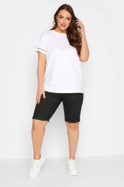 YOURS – Short En Jean Noir Stretch GriffĂ© Ourlets RetroussĂ©s