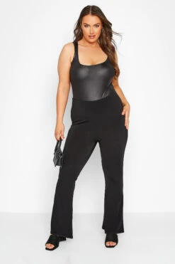 LIMITED COLLECTION Curve Black & White Dogtooth Belted Spilt Hem Flare Trousers