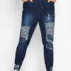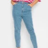 Craquez pour notre jean mom bleu déchiré délavé taille élastique. Tendance et féminin, vous allez l’adorer cette saison.