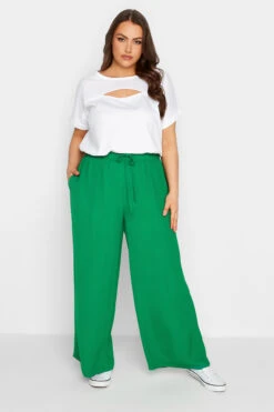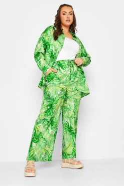 Ajoutez une touche de couleur Ă vos tenues de saison pour vos vacances avec notre pantalon wide leg vert feuilles.