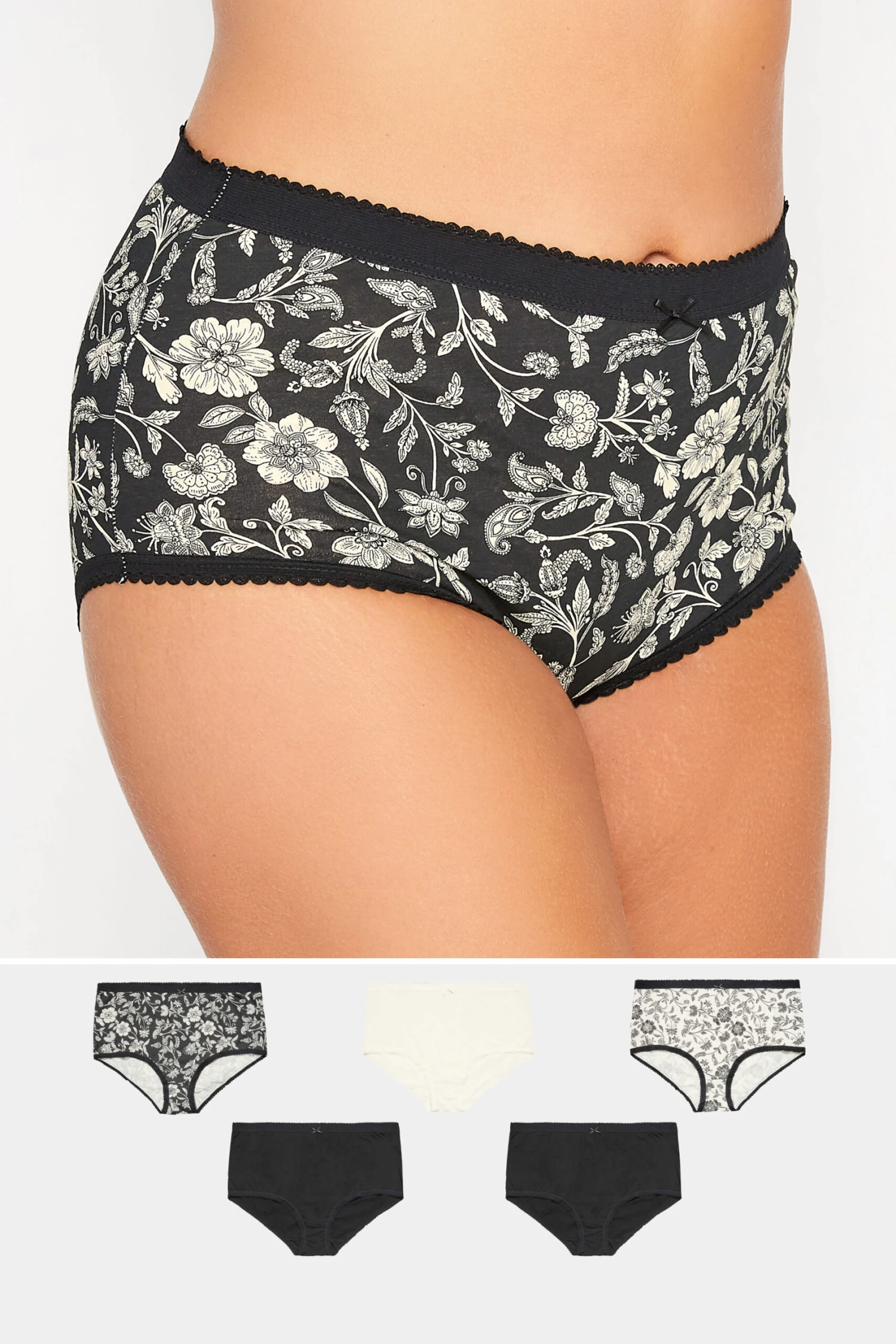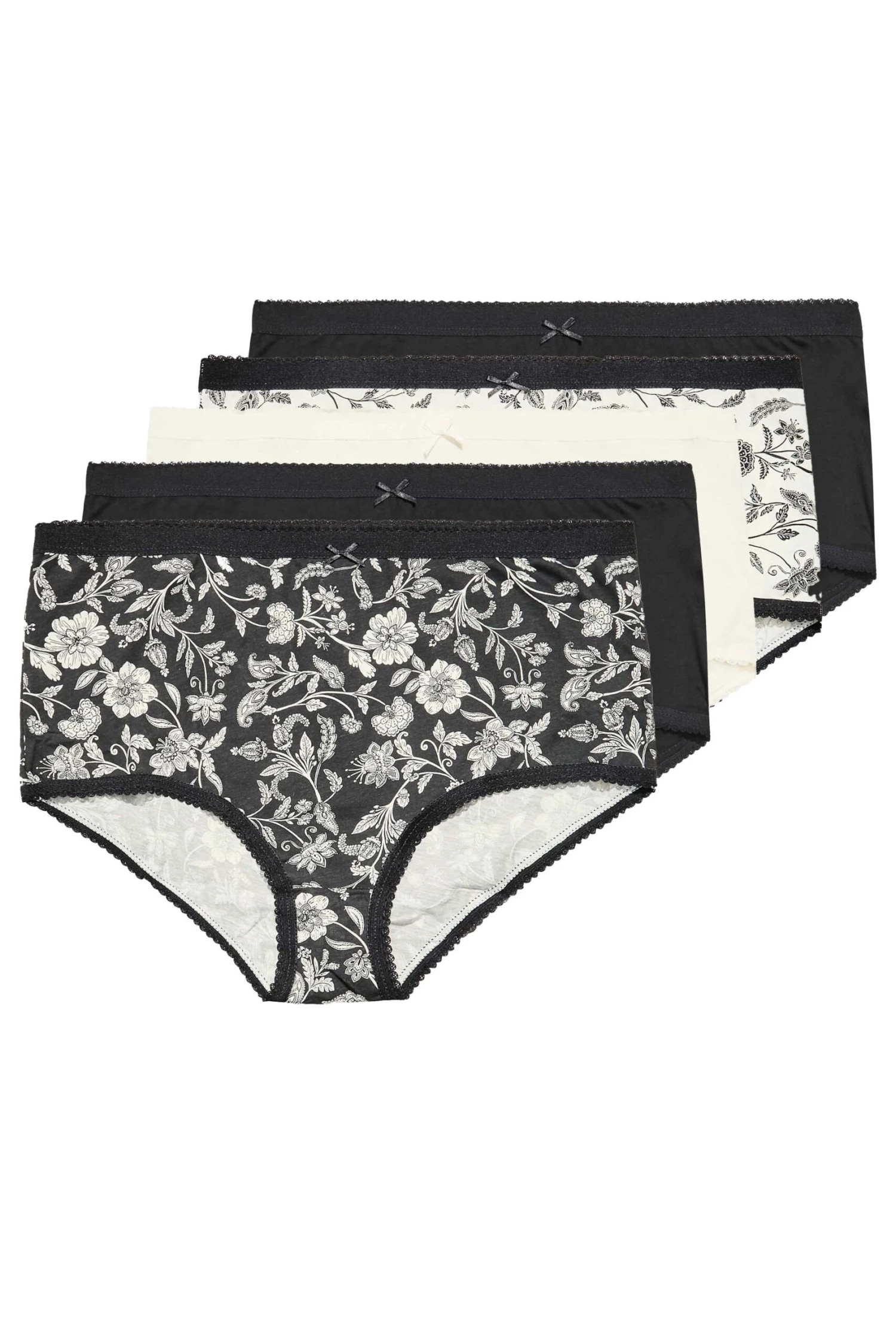Faites le plein de sous-vĂŞtements cette saison avec notre lot de 5 culottes noires et blanches floral.