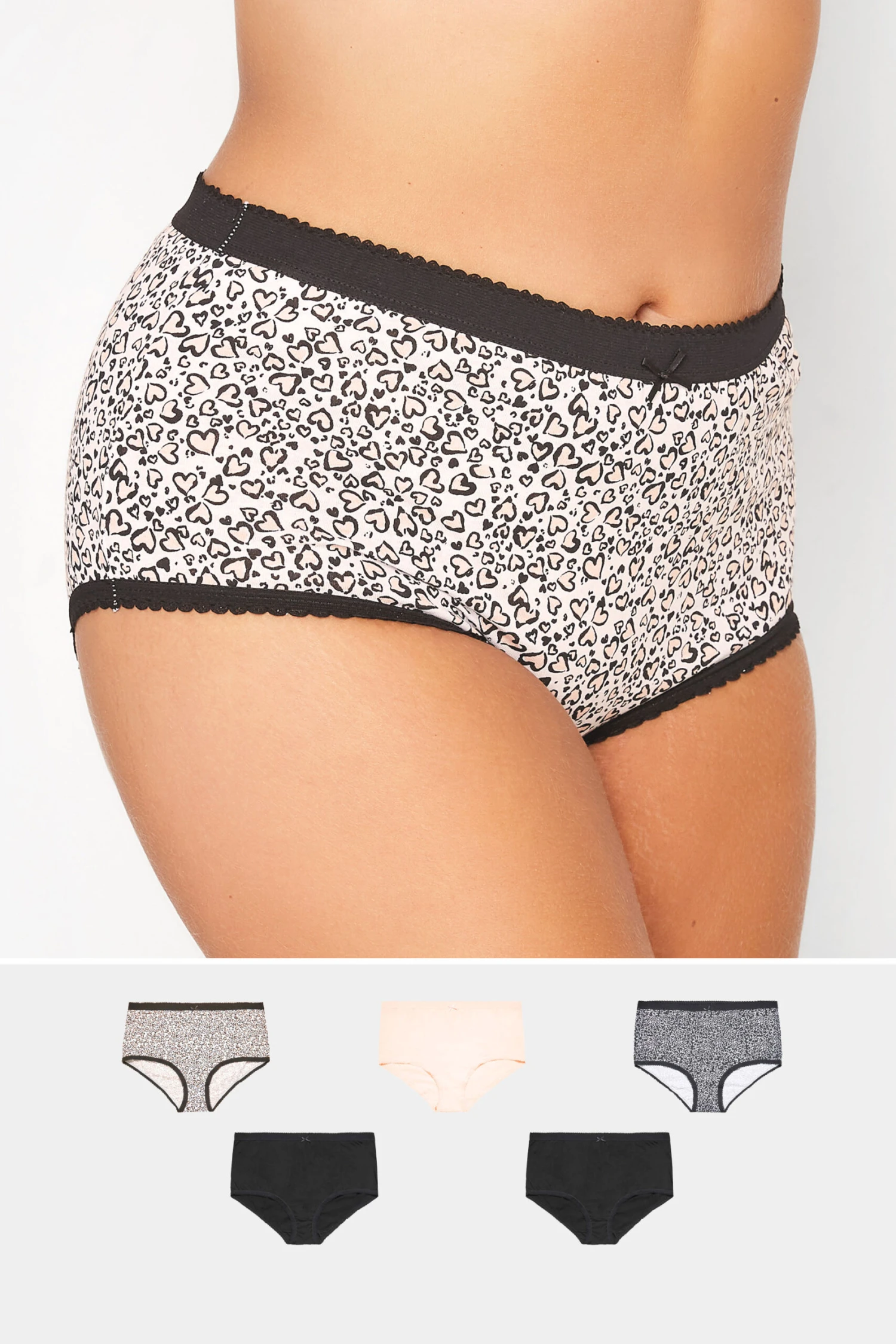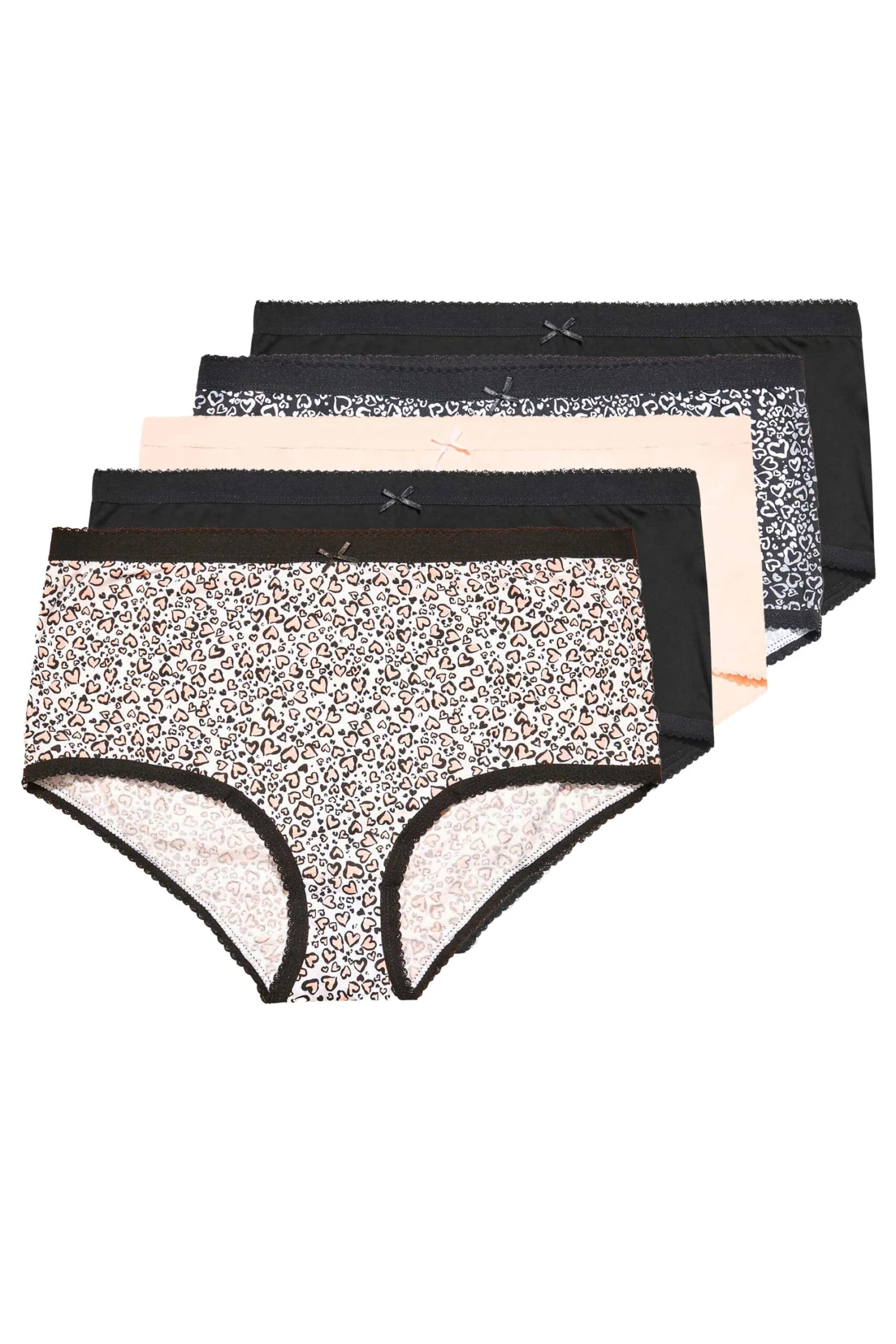 Faites le plein de sous-vĂŞtements cette saison avec notre lot de 5 culottes noires et roses animal et coeurs.