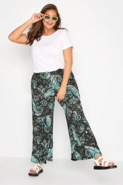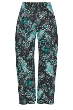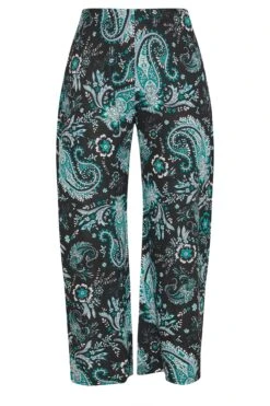Craquez pour notre pantalon noir et vert imprimĂ© paisley wide leg. Confortable et tendance, vous allez l’adorer cette saison!