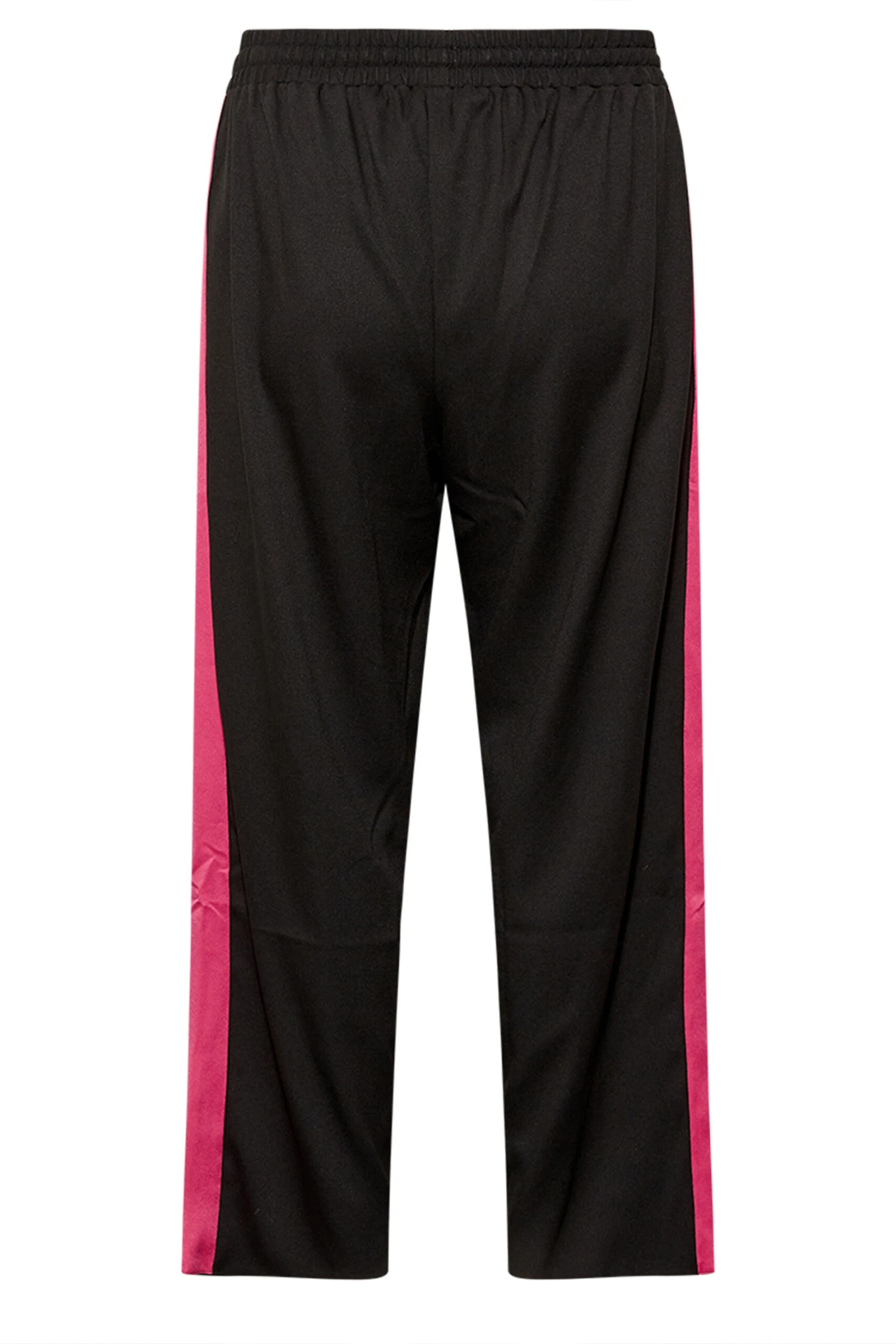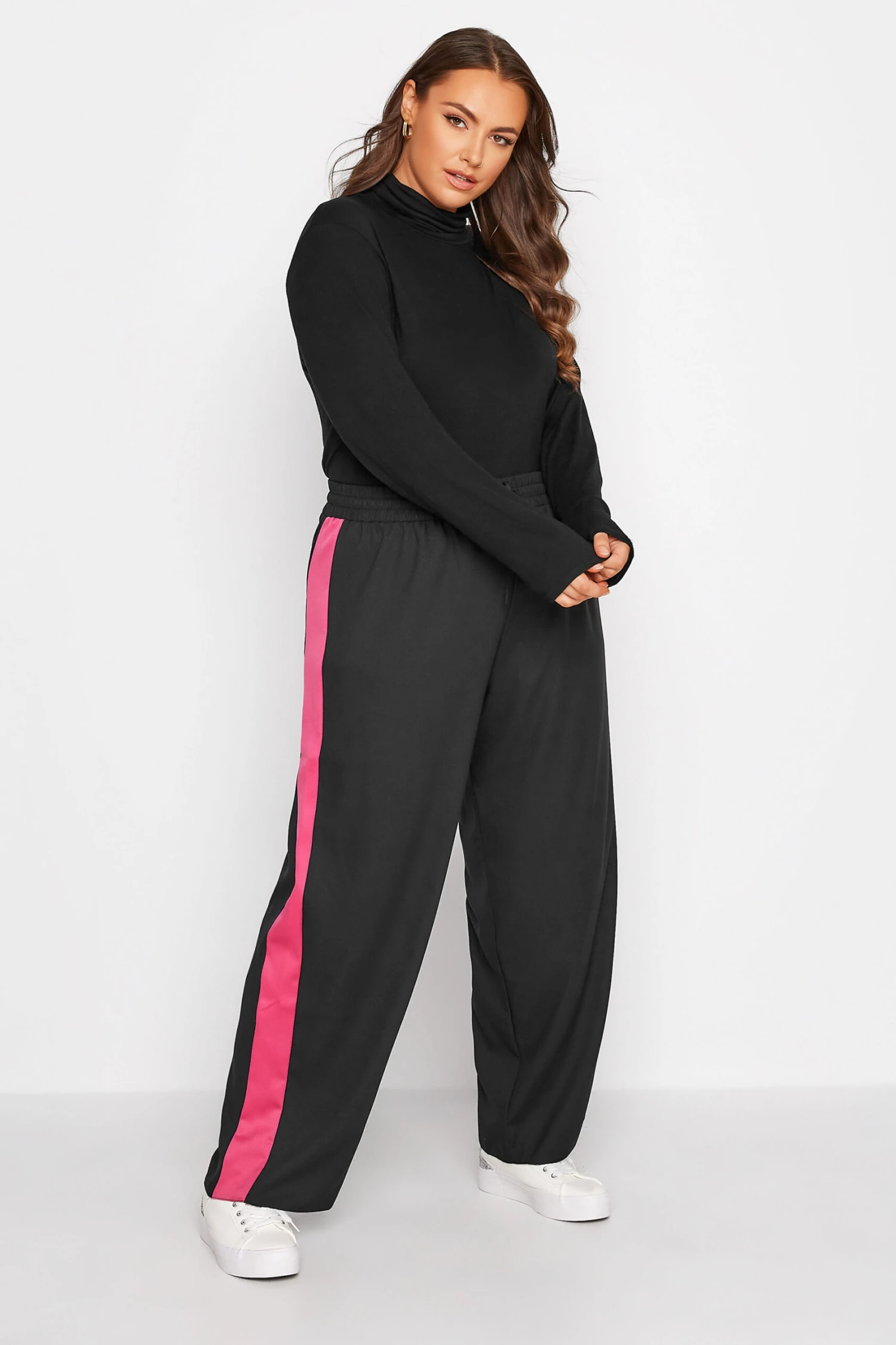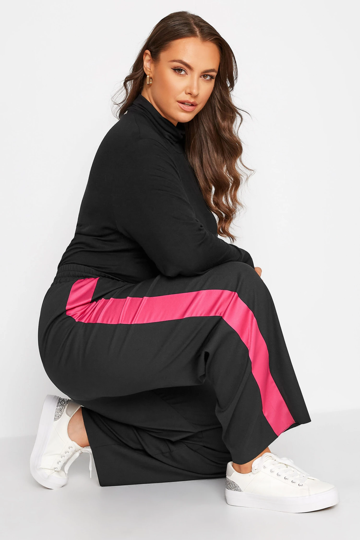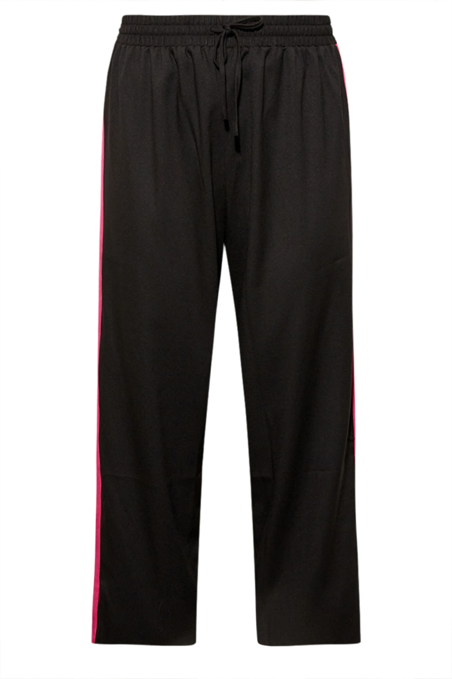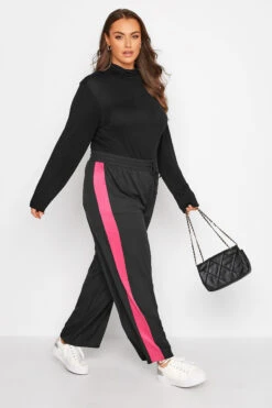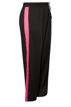 Restez cosy et tendance cette saison avec notre pantalon wide leg noir bande rose taille élastique.