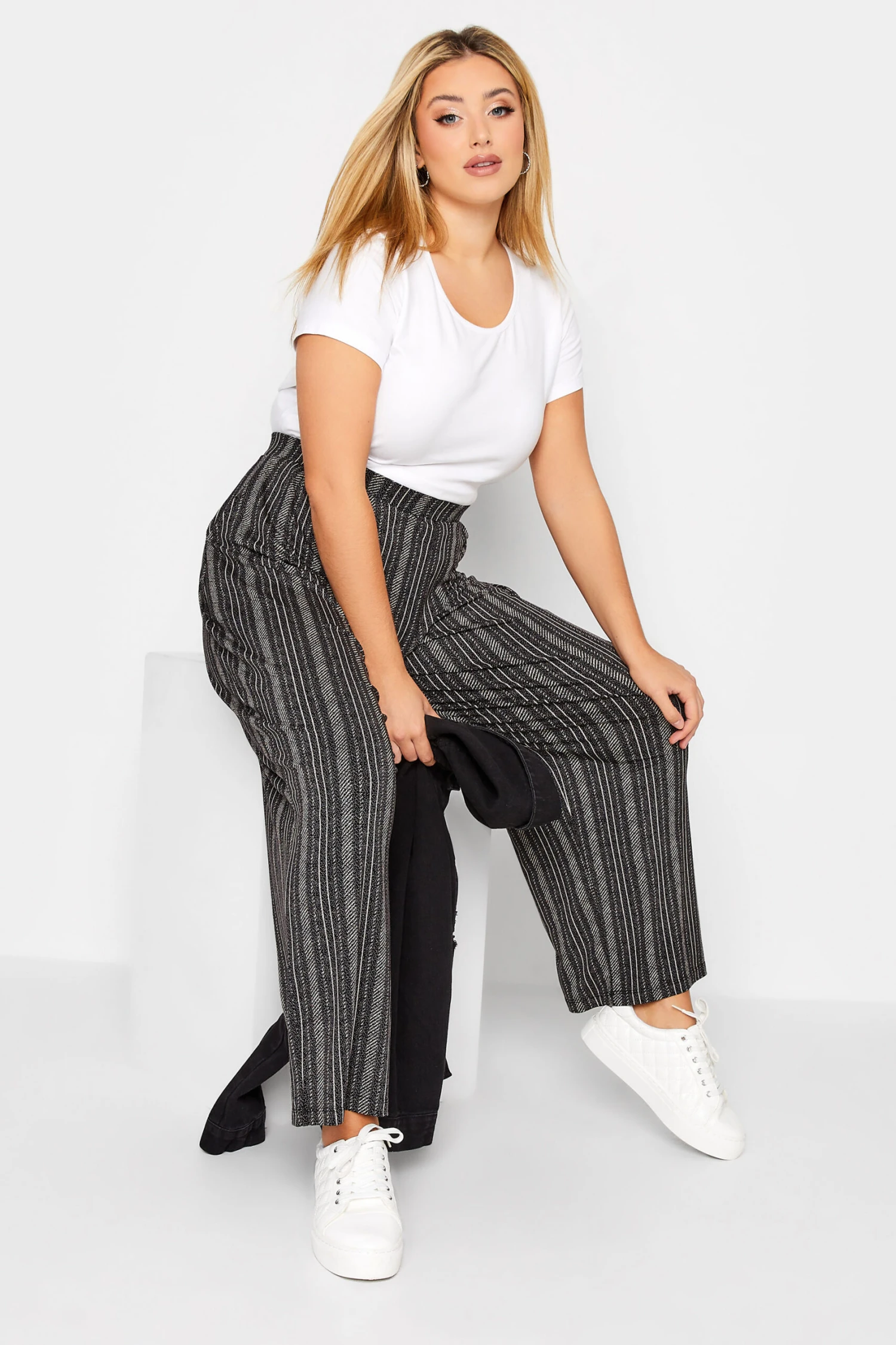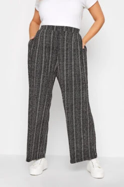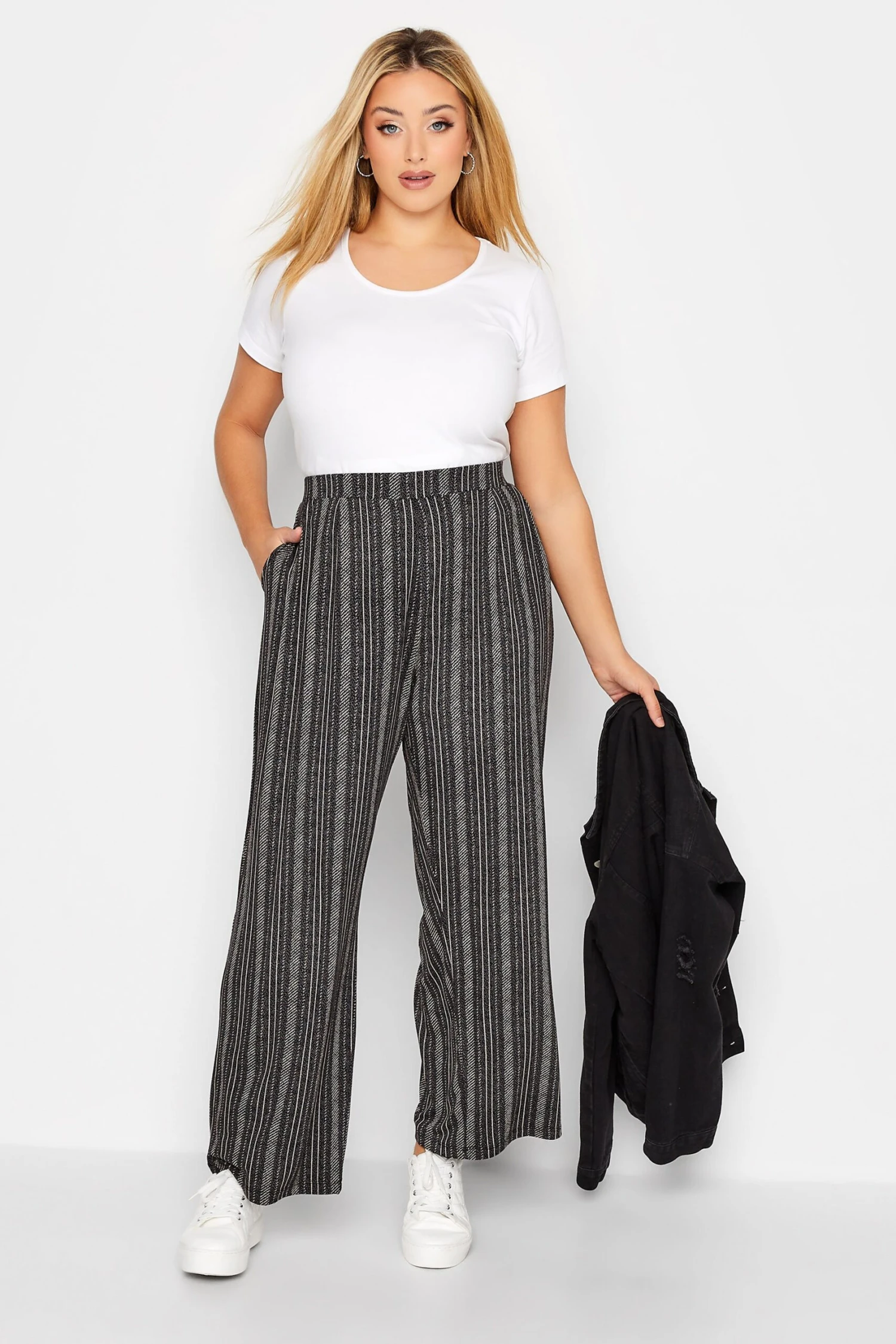 Complétez votre collection de pantalons classes avec notre pantalon wide leg noir stretch rayures mixtes.