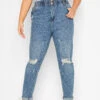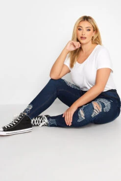 Complétez votre collection de jeans cette saison avec notre skinny jean bleu déchiré taille élastique.