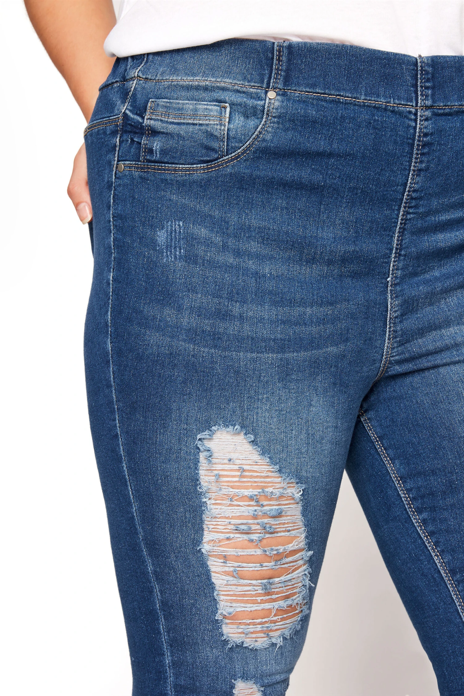 Craquez pour notre Jenny jegging pantacourt bleu foncé déchiré Yours For Good. Confortable, tendance et éco-friendly, vous pourrez le porter en plusieurs styles cette saison.