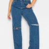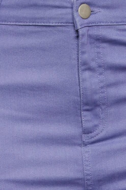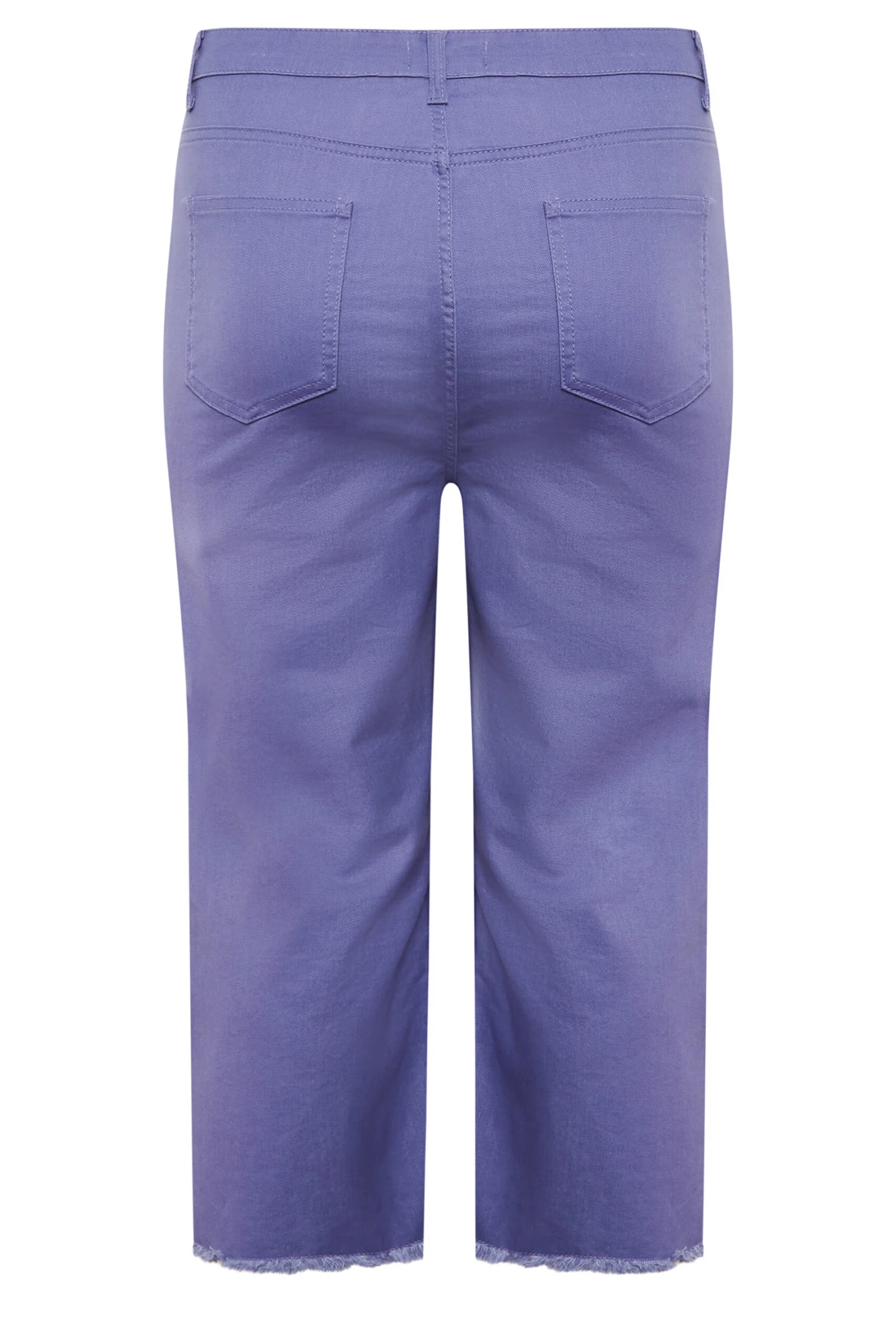 Faites le plein de pièces tendances cette saison avec notre jean pantacourt violet stretch ourlets effilochés.