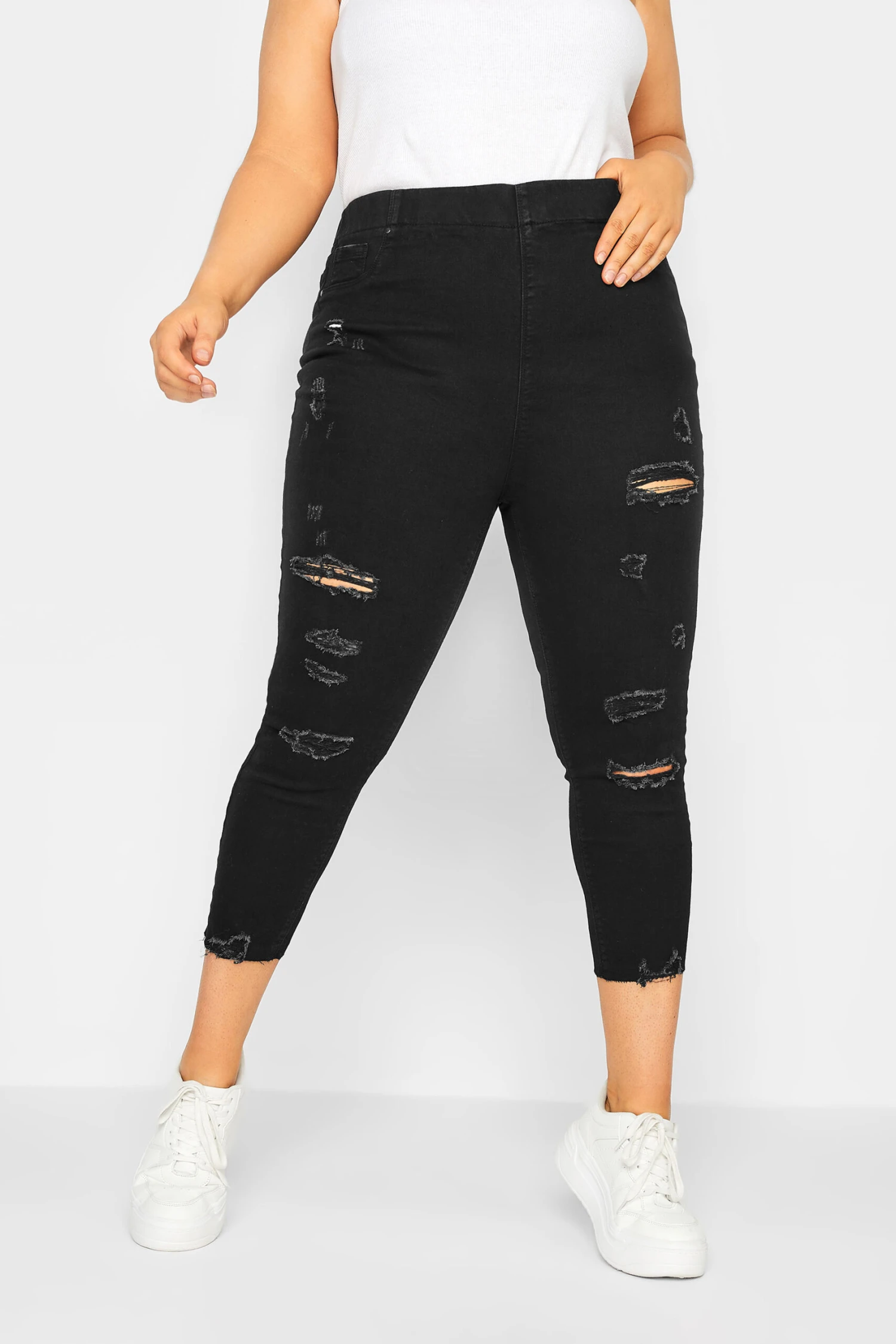 Complétez votre garde-robe de saison avec notre jegging pantacourt noir déchiré.
