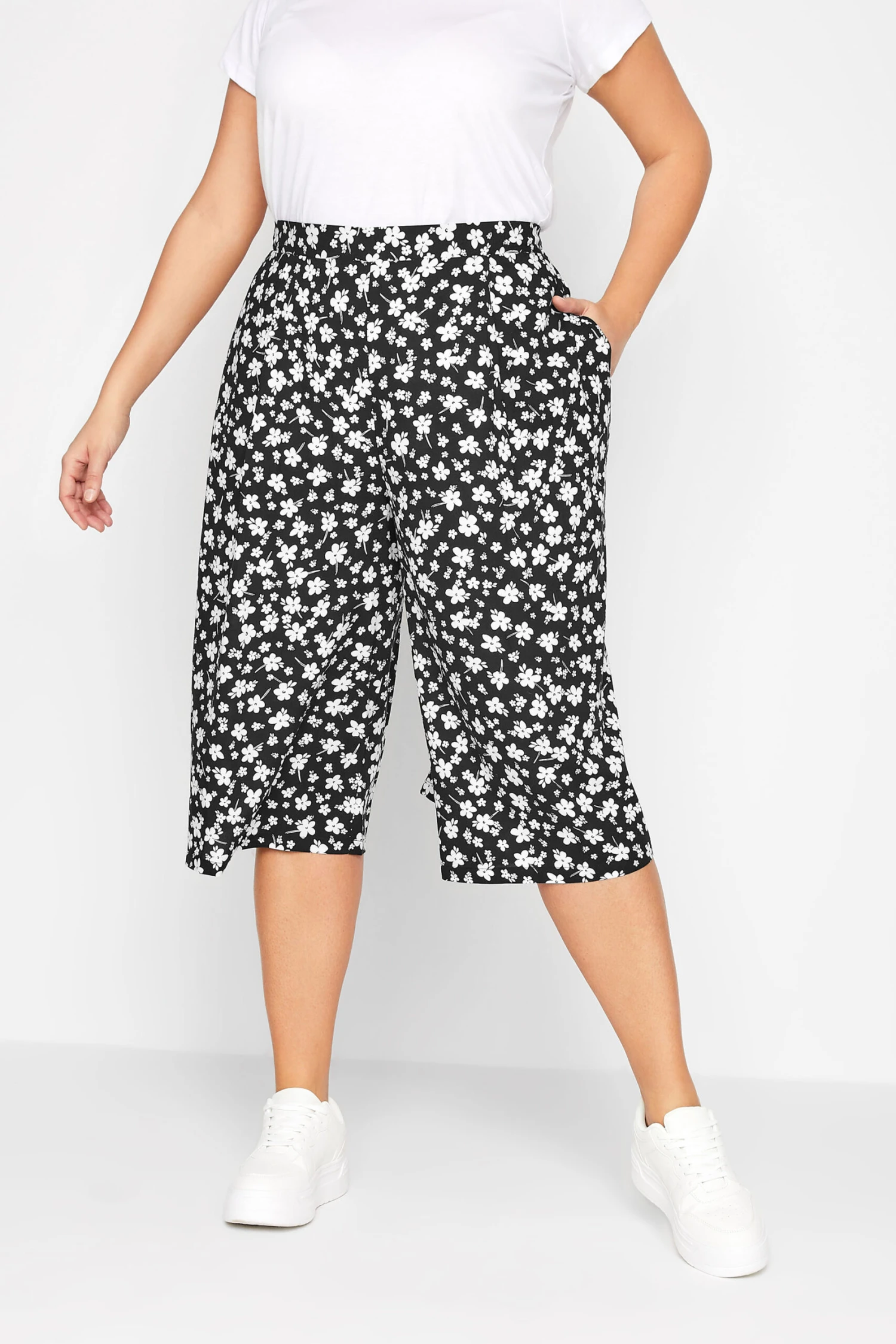Ajoutez une touche tendance Ă votre collection de pantalons de saison avec notre pantalon jupe-culotte noir et blanc floral.