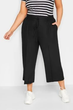 Faites le plein de pièces classes cette saison avec notre pantalon jupe-culotte noir plissé en lin.
