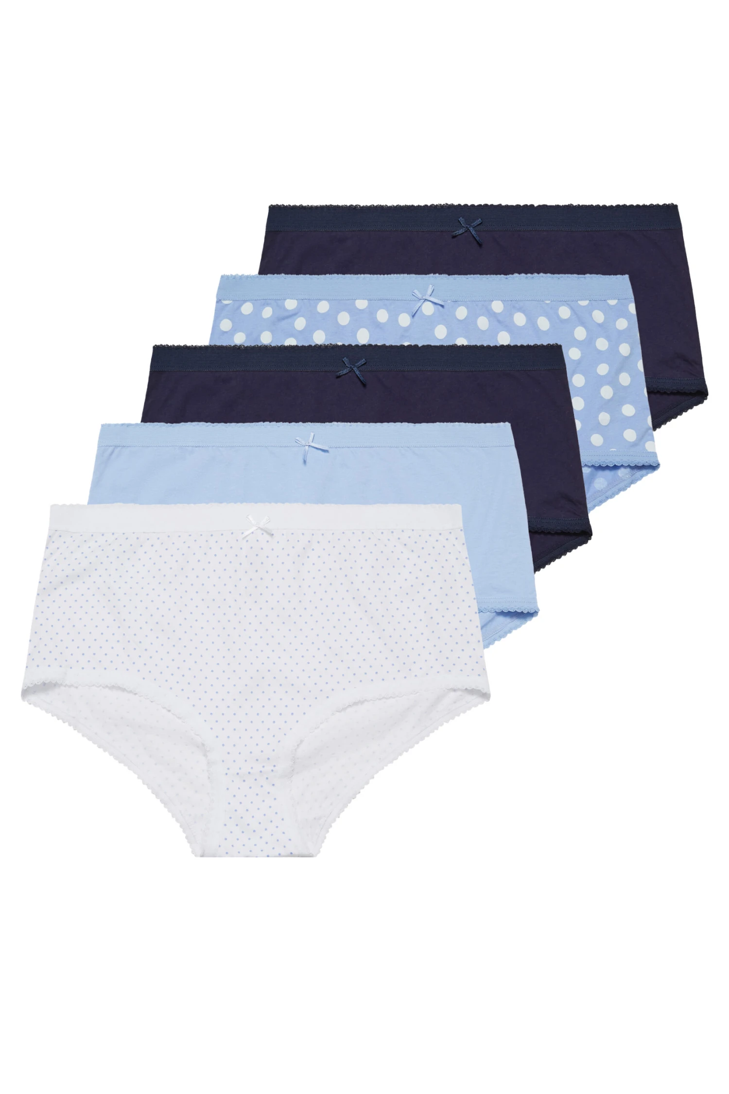 Faites le plein de lingerie cette saison avec notre lot de 5 culottes bleues Ă pois et unies. Confortables Ă porter pour tous les jours, vous allez les adorer.
