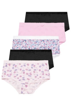 Faites le plein de lingerie féminine et confortable cette saison avec notre lot de 5 culottes roses et noires floral uni.