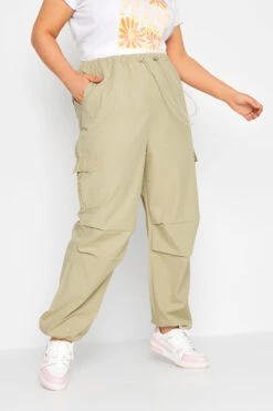 Complétez votre collection de pantalons de saison avec notre pantalon beige cargo coupe prachûte à poches. Confortable et pratique, vous allez adorer le porter cette saison.
