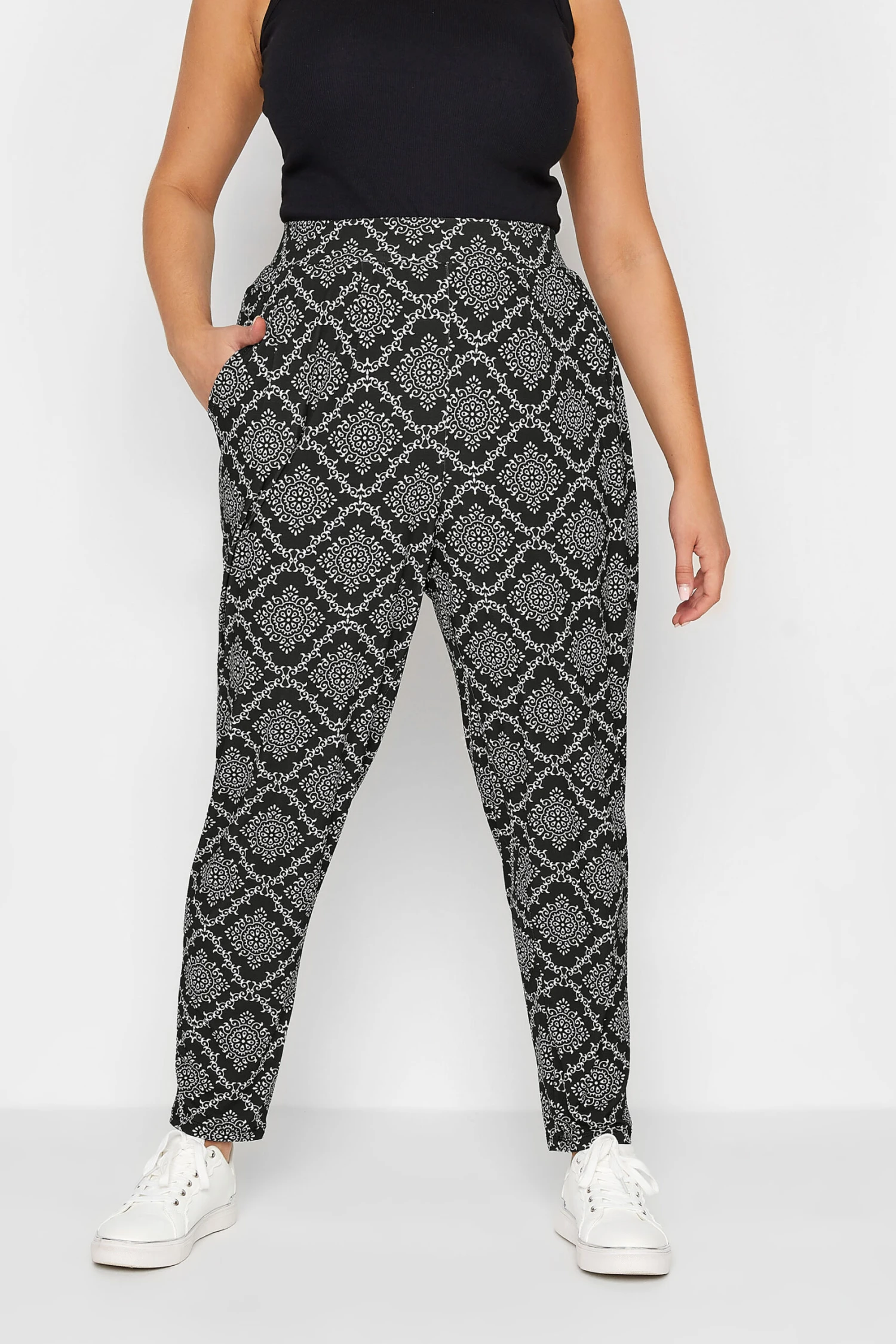 Craquez pour notre pantalon noir fluide ample design losanges. Tendance et confortable, vous allez adorer le porter cette saison.