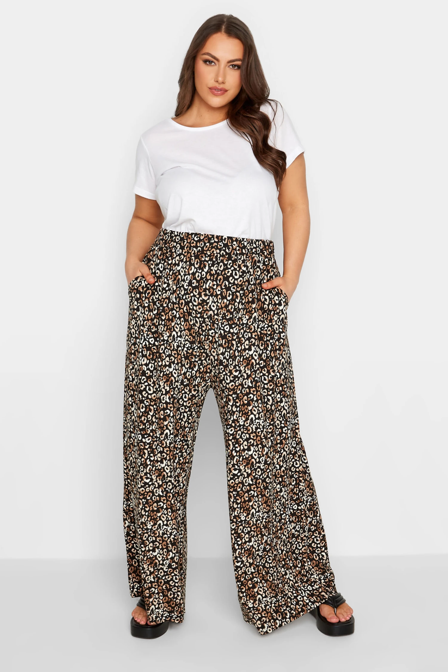 Craquez pour notre pantalon tendance noir et marron lĂ©opard wide leg stretch. Tendance et confortable, vous allez l’adorer cette saison.