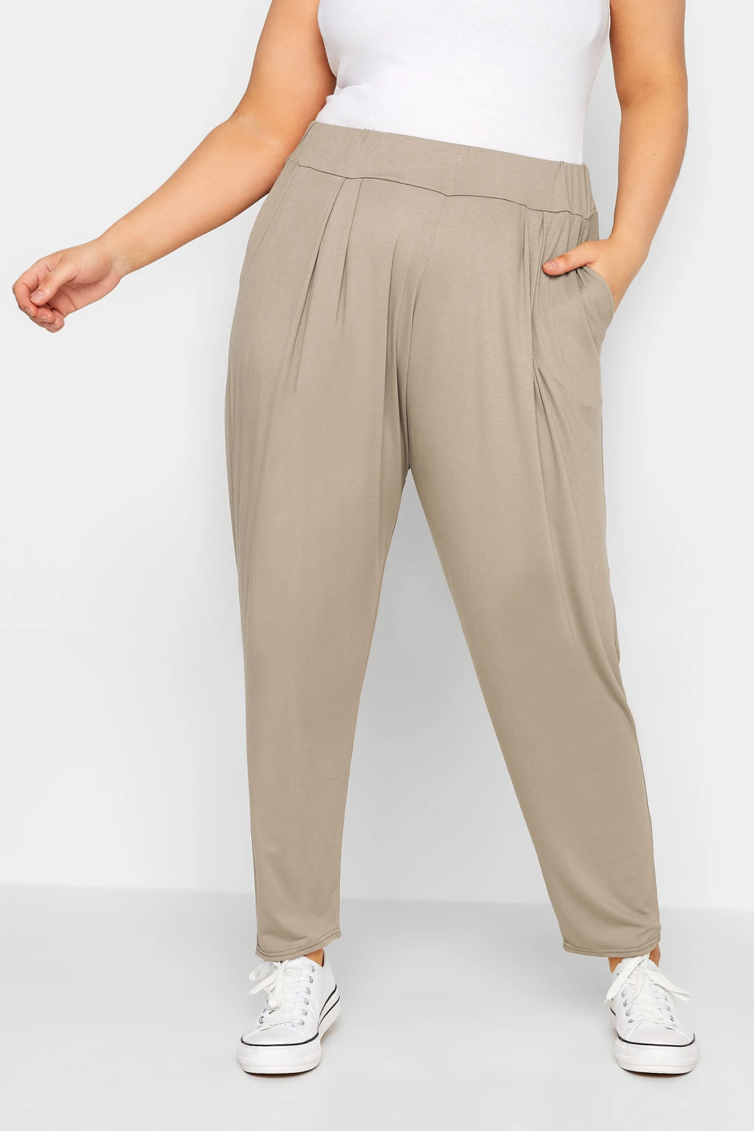 Craquez pour notre pantalon style sarouel beige plissĂ©. Tendance et confortable, vous allez l’adorer pour vos sorties.