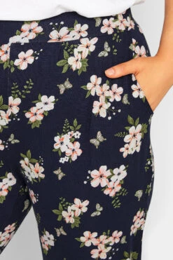 Restez cosy et tendance cette saison avec notre pantalon style sarouel bleu marine floral. Confortable et lĂ©ger, vous allez l’adorer.
