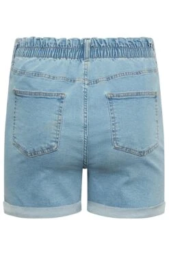Complétez votre garde-robe de saison avec notre short bleu clair taille haute plissée design déchiré.
