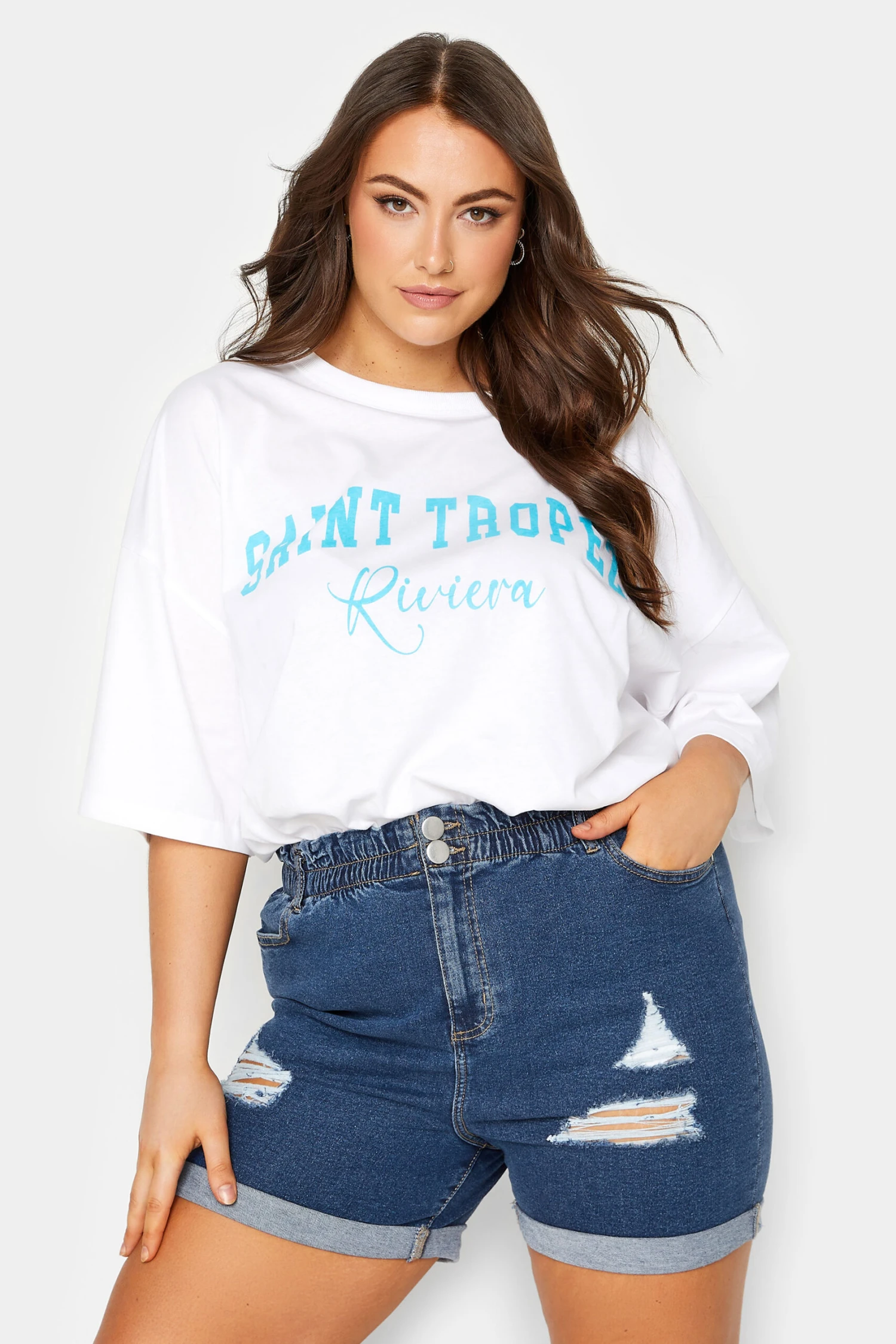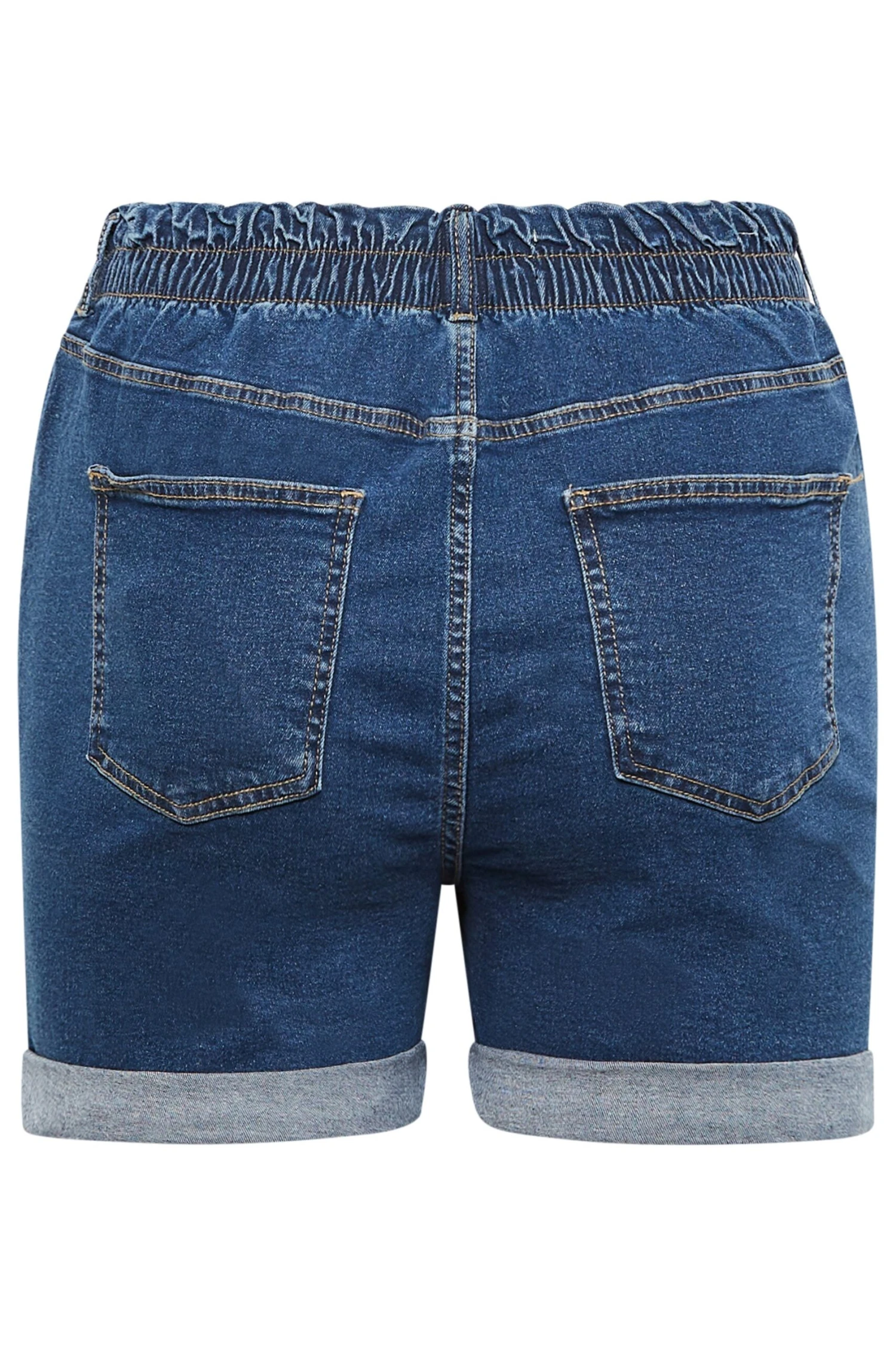 Complétez votre garde-robe de saison avec notre short bleu foncé taille haute plissée design déchiré.
