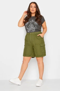 Craquez pour notre short cargo vert kaki Ă poches. Tendance, confortable et lĂ©ger, vous allez l’adorer cette saison.