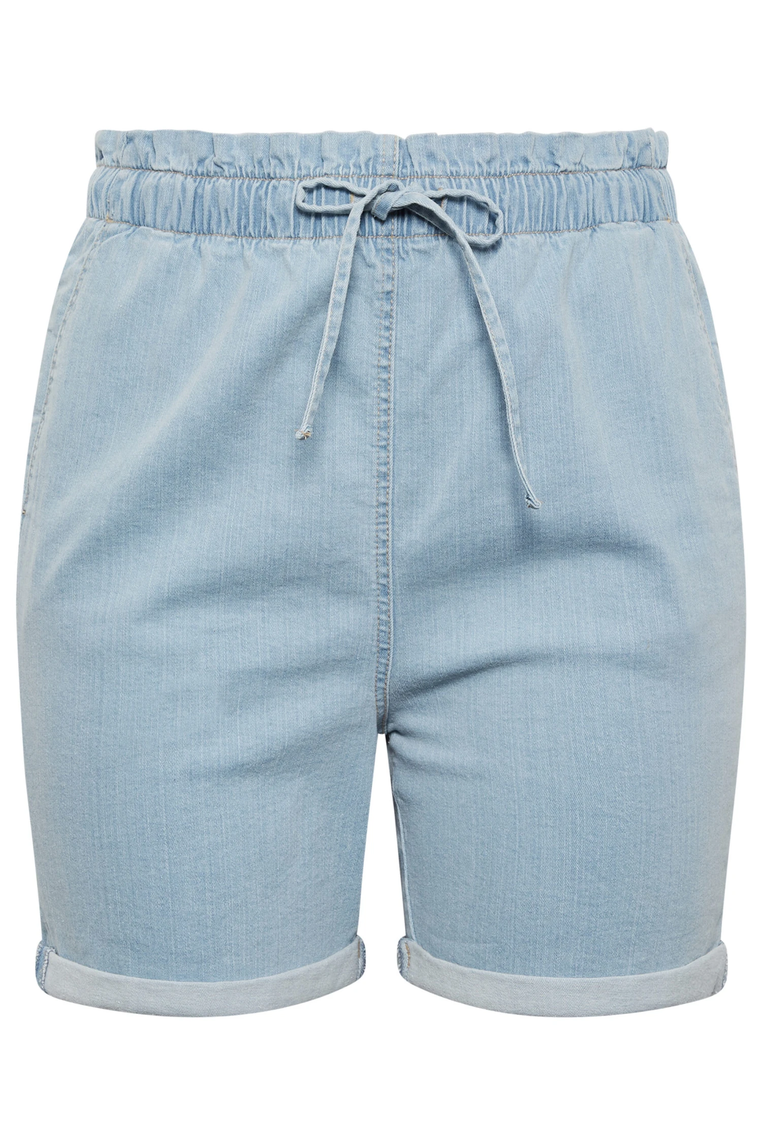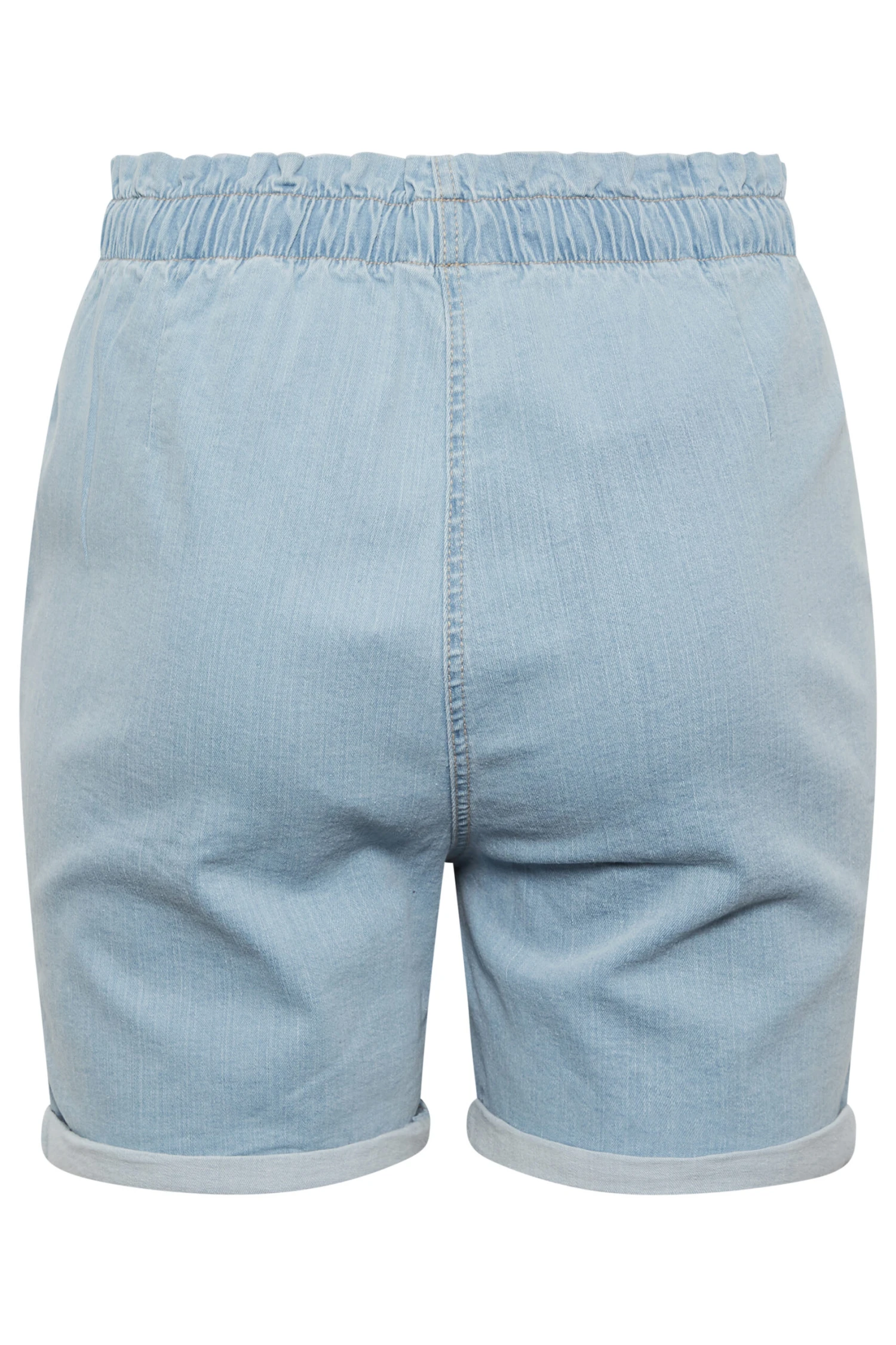 Craquez pour notre short en jean mom bleu ciel paperbag à poches. Confortable et tendance, vous ne voudrez plus vous en séparer cette saison.