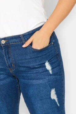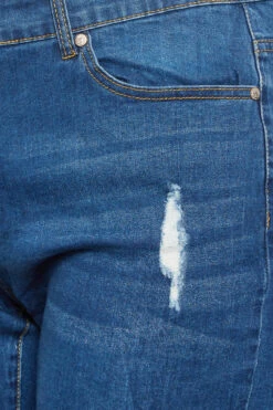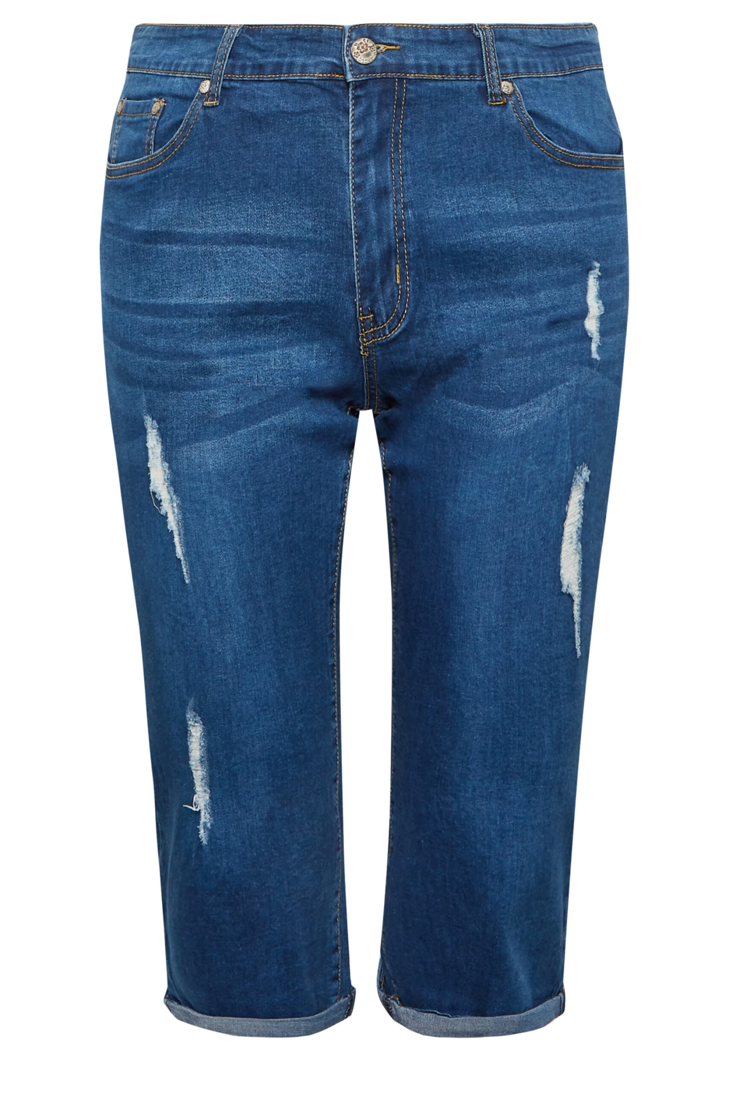Faites le plein de pièces tendances cette saison avec notre short long en jean bleu déchiré 5 poches.